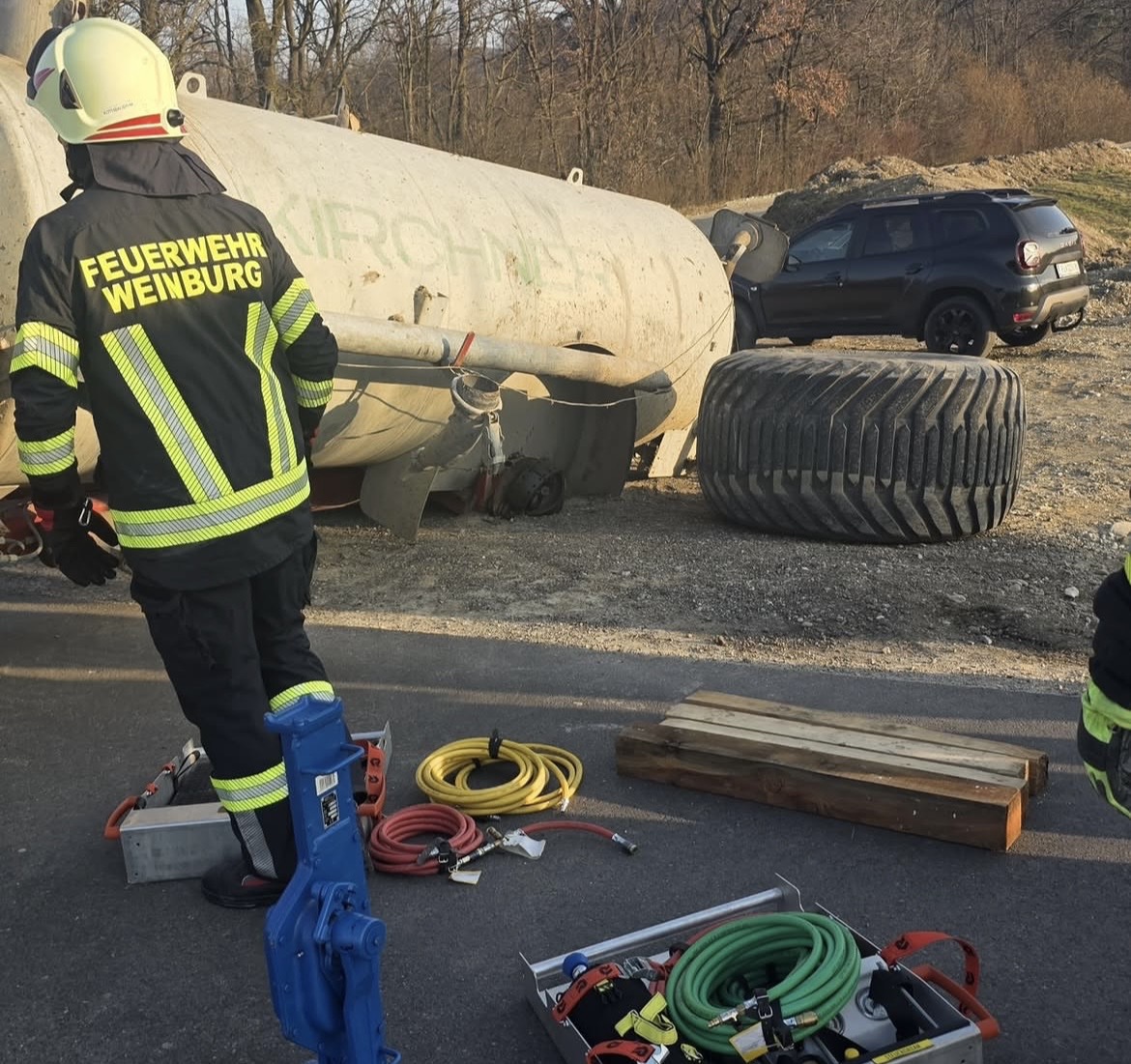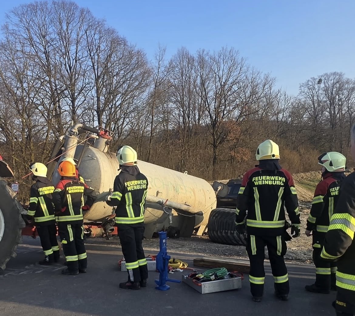 Am 7.3. um 16:24 Uhr wurde die Einsatzmannschaft zu einem technischen Einsatz in Klangen alarmiert. Ein Güllefass war umgekippt, ragte auf die Fahrbahn und erforderte rasches Handeln. Zur Gewichtsreduktion wurde der Inhalt in ein bereitgestelltes Güllefass umgepumpt. Zudem wurde das Fass stabilisiert und anschließend von zwei Manitous auf einen Tieflader verladen.